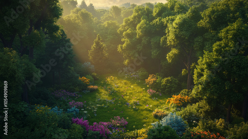 aerial, landscape, serene, forest, clearing, wildflower, bloom, surrounded, towering, tree, sunlight, meadow, vibrant, peaceful, natural, scene, tranquil, beauty, colourful, ecology, flora, scenic, wilderness, harmony, bright, soft, light, greenery, fresh, nature, exploration, biodiversity, sunshine, calm, picturesque, blooming, rural, pastoral, relaxation, escape, richness, habitat, peace, environment, serenity, flourishing, open