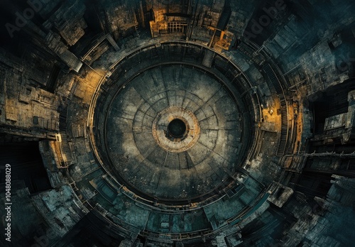 industrial, architecture, circular, structure, metal, design, texture, lighting, symmetry, engineering, urban, decay, depth, perspective, interior, space, technology, environment, concrete, pattern, round, facility, construction, modern, shadow, detail, machinery, line, surface, framework, atmosphere, ambience, abandoned, geometric, visual, aesthetic, industrialism, element, exploration, innovation