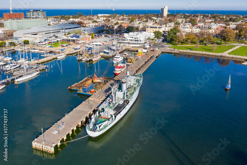 australia, aerial, view, naval, ship, dock, bay, side, harbor, coastal, victoria, bay, coastline, ship, melbourne, high, boat, up high, aerial, yacht, marina, dock, harbor, pier, birds eye view, port
