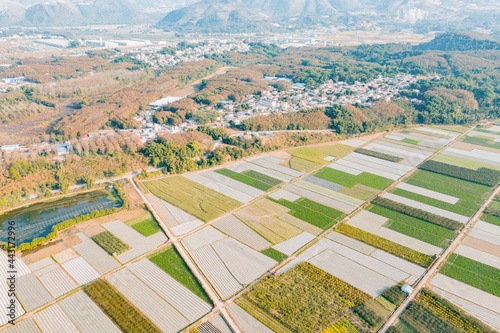 aerial view of a village field