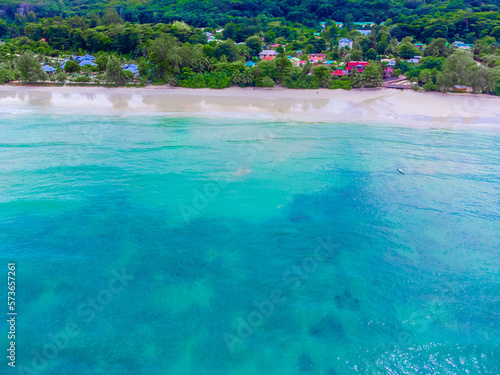 Aerial view of Anse Volbert beach in Cote d'Or