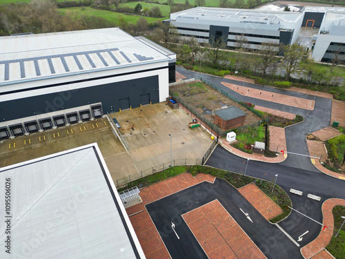 Aerial View of Central City Centre Elstree Uxbridge London City of England, Great Britain. It Was Rainy and Cloudy Day with Strong Winds over England, UK. April 4th, 2024