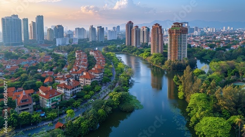 city, skyline, river, residential, sunset, building, house, city landscape, urban, landscape, aerial, view, architecture, nature, water, tree, green, modern, luxury, home, development, environment, evening, light, dusk, panoramic, high, rise, tower, condo, community, park, scenery, design, real estate, property, horizon, district, metropolis, suburb, street, road, travel, vacation