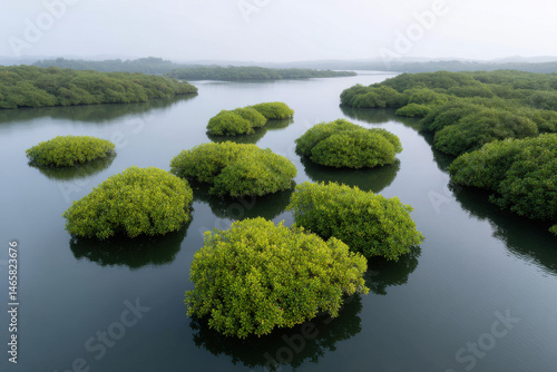 aerial view of coastal wetland in india during soft twilight