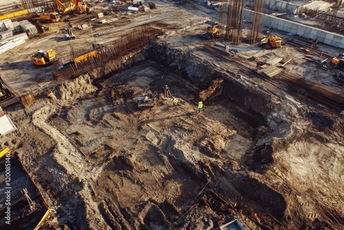 aerial view of construction worker in construction site, Generative AI