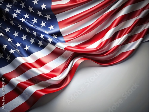 Aerial View of Flowing USA Flag Banner with Stars and Copy Space for Custom Text, Perfect for Independence