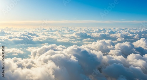 cloud, sky, blue, white, fluffy, aerial, view, landscape, nature, sunlight, horizon, atmosphere, weather, puffy, cloudscape, dawn, dusk, sunrise, sunset, serene, peaceful, calm, dreamy, aethereal, up high, high, altitude, panorama, scenic, beauty, light, bright, airy, soft, texture, formation, cumulus, cirrus, stratocumulus, heaven, freedom, space, huge, open, day, travel, journey, flight, elevation