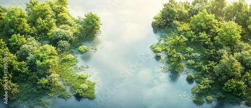 river, island, aerial, view, green, lush, tree, nature, water, summer, sunlight, foliage, landscape, vegetation, plant, tranquil, serenity, calm, ecosystem, environment, ecology, overhead, wildlife