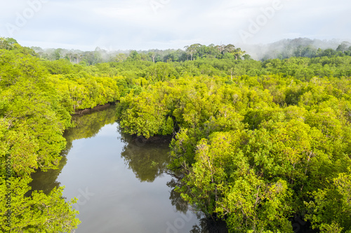 aerial view of mangrove forest at Sepilok Laut, Sabah Borneo, Malaysia.