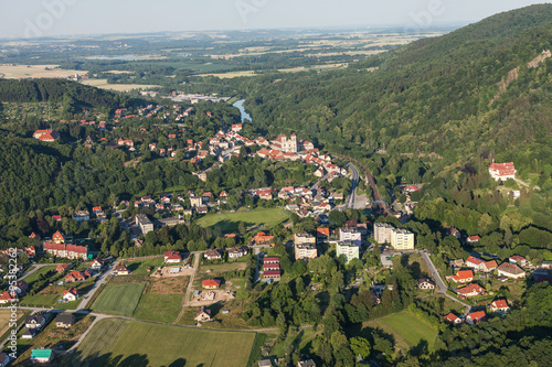 aerial, air, church, flight, forest, mountain, poland, river, town, village