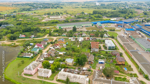 Aerial view of the city of Yuryev-Polsky, one of the oldest cities in the Moscow region, from a drone. Vladimir region, Russia