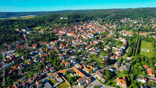 Aerial view of the old town Blankenburg in Germany on a sunny noon in spring