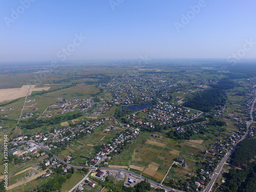 Aerial view of the saburb landscape (drone image). Near Kiev