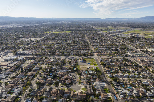 Aerial view of the Sun Valley neighborhood in the San Fernando Valley region of Los Angeles, California.