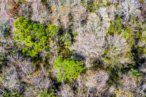 Aerial view of trees in a public park at St. Sebastian River State Park, Fellsmere, Florida, United States.