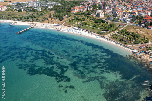 Aerial view to the beach on sea resort Ravda, Bulgaria