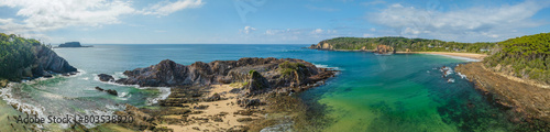 aerial, australia, bay, beach, cloud, coast, coastal, cove, early morning, forest, inlet, lagoon, landscape, morning, nature, new south wales, nsw, ocean, outdoors, sanctuary, scene, scenery, sea, seascape, shore, sky, tranquil, water, panorama