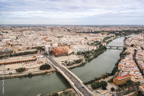Aerial winter cityscape of Seville, Andalusia, Spain.