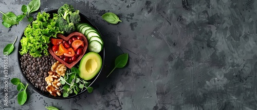 Aerobic exercise and clean eating with heart dish of nutritious food, promoting cardiovascular health, fitness, and wellness