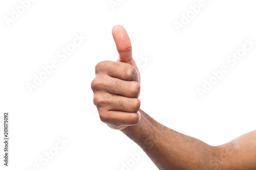 hand, finger, signs, gesture, human, success, male, black, isolated, ethnic, diversity, white, background, copy space, free space, business, person, people, symbol, agree, agreements, approval, concept, gesticulate, good, like, ok, positive, positivity, satisfaction, studio, successful, thumb, up, down, winner, african american