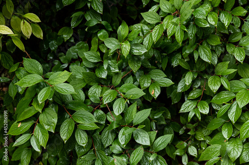 After rain Water Drops on Green leaves in the garden pattern background, sparkle of Droplets on surface leaf, color Dark Flat lay Natural background for input text