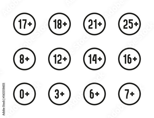 age, restriction, forbidden, adult, year, icon, line, vector, outline, set, editable, stroke, plus, warning, old, circle, buttons, signs, prohibition, no, limit, only, over, control, round, under, 5, 1, 20, 18, 17, 16, 14, 12, 8, 7, 6, three, zero, stop, number, education, lined, linear, web, collection, thin, symbol
