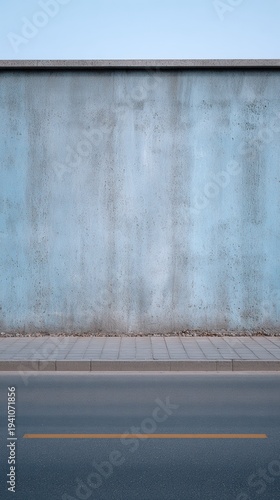 Aged Blue Concrete Wall Background with Asphalt Road and Sidewalk providing Copy Space for Urban Architectural Branding and Outdoor Street Style Mockups