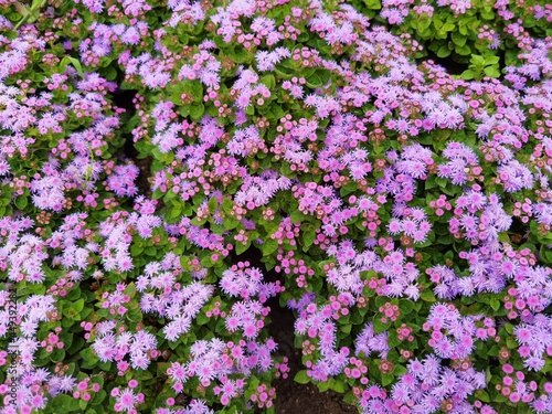 Ageratum houstanianum. Purple flowers of flossflower, bluemink, blueweed.