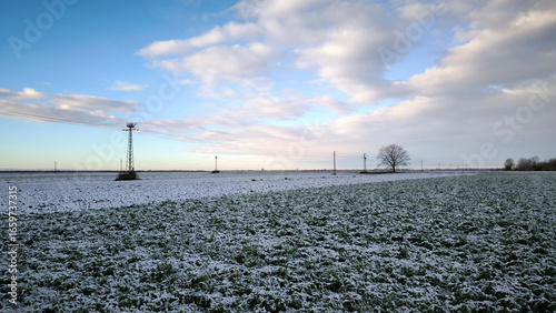 agricultural fields covered with snow in Vojvodina province