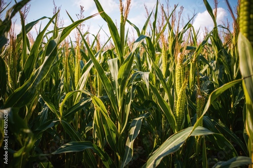 Agricultural scenes from various perspectives in a maize field for promotional materials