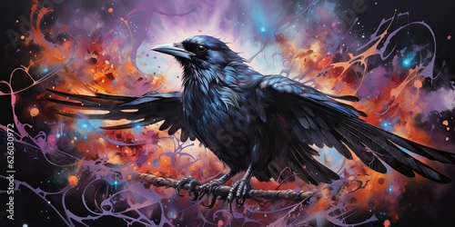 abstract, paint, bird, crow, raven, cry, fear, flight, object, postcard, composition, decoration, character, fauna, halloween, darkness, creative, grunge, element, life, decor, artistic, picture, beautiful, symbol, dark, gothic, background, feather, beak, drawing, wing, wild, wildlife, nature, wing, animal, black, design, graphic, art, watercolor, oil, vignetting, geometric, ai, illustration
