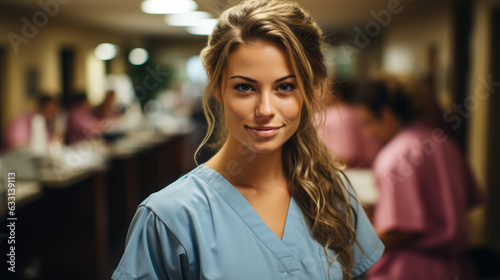ai, generative, woman, nurse, smiling, trustworthy, young, health care, medical professional, caring, compassionate, accurateness, dedicated, healing, supportive, medical care, clinical, health, wellness, empowerment, vitality, compassion, kindness, professionalism, humanitarian