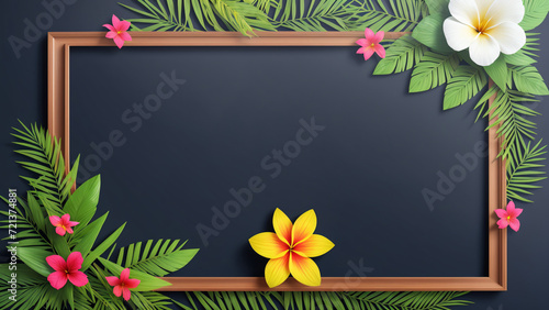 AI generated illustration of a frame with flowers around and copyspace for your text or image
