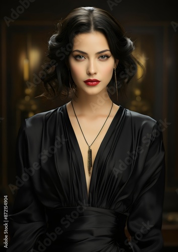 AI Generated Portrait of Japanese Woman in Elegant Black Velvet Gown