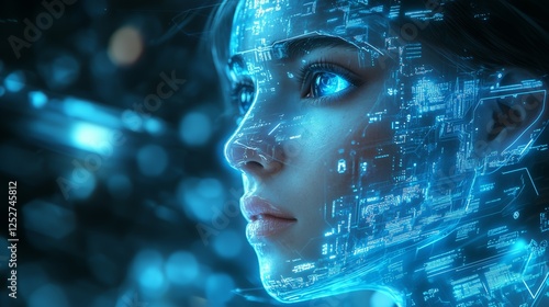 artificial intelligence, ai, digital, technology, future, girl, woman, facial, blue, fantasy, science fiction, circuit, datum, network, virtual, reality