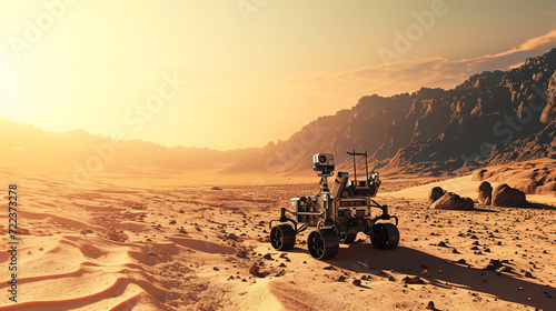 AI robot work in low humidity, and limited water resources characterize desert environments, - AI Generated