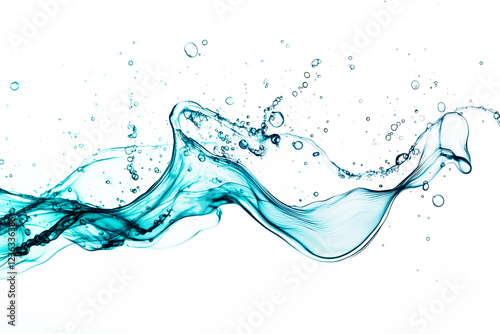 ai, generative, water, shape, abstract, surreal, surrealism, concept, studio shot, white background, purity, freshness, drinking water, transparency, calmness, horizontal, nobody, closeup, simplicity, decoration, liquid, flow, fluid, banner, surface level, pattern, motion, creativity, blue, splash, wavy, wave, curved