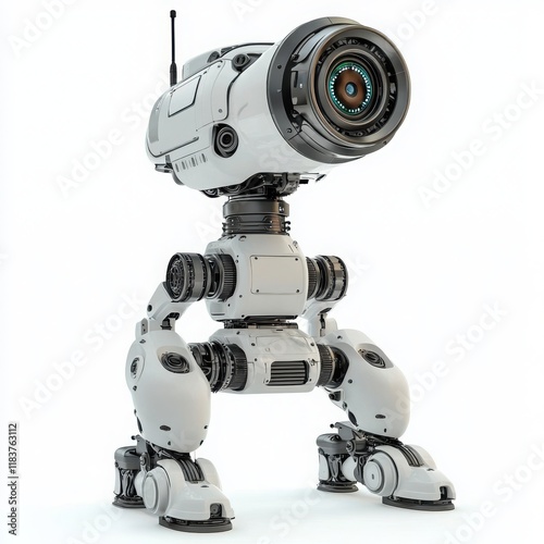 robot, microscope, technology, three-dimensional, robotic, camera, equipment, science, object, machine, toy, laboratory, metal, instrument, futuristic, cartoon, medicine, gold, person