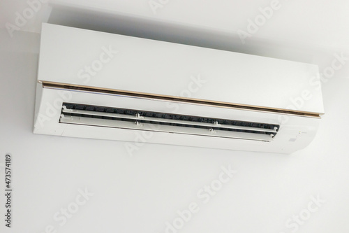 Air conditioner on white wall room interior background