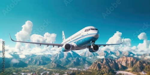 Air Plane Flying on The Blue Sky, Travel Around the World Background. Generative Ai