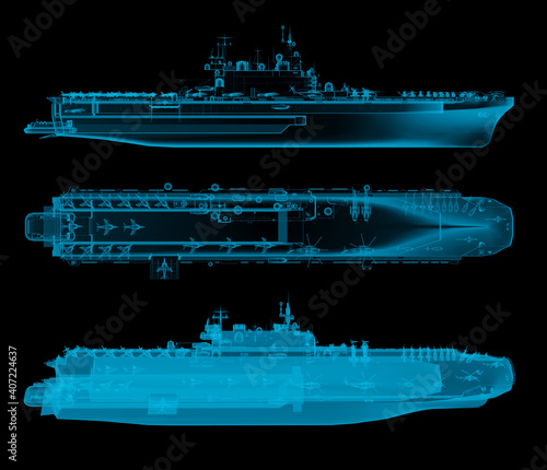 aircraft carrier side and top view in x-ray