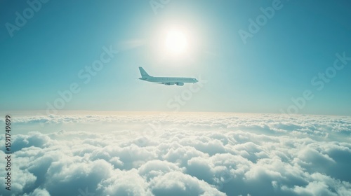 aeroplane, plane, flight, sky, cloud, sun, travel, journey, air, altitude, aviation, transport, freedom, adventure, vacation, holiday, summer, blue, white, scenic, view, landscape, aerial, high, up high, distance, horizon, sunshine, bright, day, weather, clear, beautiful, majestic, serene, peaceful, soaring, wing, engine, cloudscape, cumulus, atmosphere, sunlight, ray, light, heaven, dream, explore