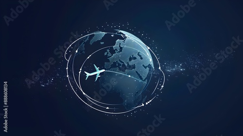 Airplane icon flying in circles around the earth. modern design World travel