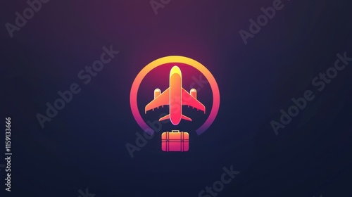 Airplane icon with suitcase, travel concept.