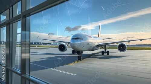 Airplane on the Runway Viewed from Terminal Window” Keywords
