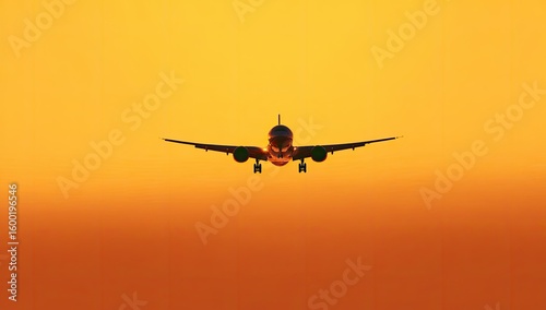 aeroplane, silhouette, sunset, orange, sky, flight, travel, dusk, horizon, aircraft, landing, shadow, colours, warm, gold, aviation, transport, perspective, dramatic, cloud, light, plane, image, air, motion, bright, gradient