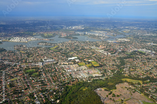 Airplane view of the city of Sydney Australia
