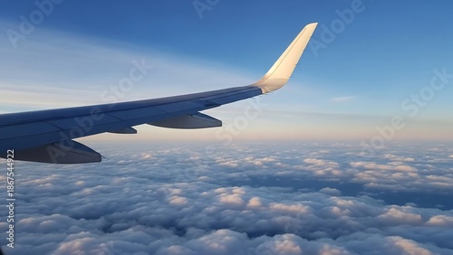 Airplane Wing View Above Fluffy Clouds During a Serene Aerial Journey