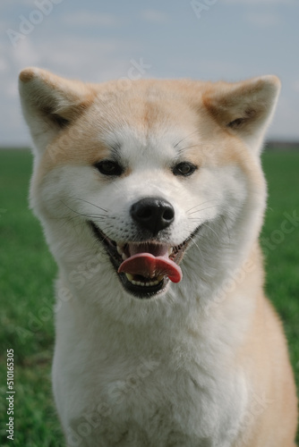 Akita Inu dog portrait in spring