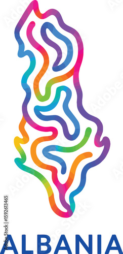 Albania Abstract Map – Vibrant Curved Line Art